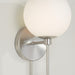 Playful forms meet sophisticated style in the Ansley 1-Light Sconce for HomePlace. The curved stem draws the eye toward the Soft White glass globe shade, while the Brushed Nickel finish creates a classic aesthetic.