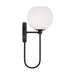 Playful forms meet sophisticated style in the Ansley 1-Light Sconce for HomePlace. The curved stem draws the eye toward the Soft White glass globe shade, while the Matte Black finish creates contrast.