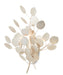 With a lyrical profile of fluttering discs that favor the leaves of its namesake plant, the Lunaria Wall Sconce is made of wrought iron in a contemporary silver leaf finish. The bulbs that are sprinkled amongst the flowing petals of metal reflect off the finish on this silver wall sconce to increase the glow.