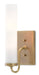 The arcing arm of the Brindisi Brass Wall Sconce defines the gracefulness of this design, the disc-shaped bobeche atop the tubular support serving as the perch for the tall, thin opaque glass canister shade. Made of metal in an antique brass finish, the cleanly designed gold wall sconce with its softly glowing white shade is certified for damp locations. Part of the Bagno Collection of wall sconces designed for bathroom spaces.