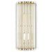 Bunny Williams has achieved a timeless profile with the Warwick Tall Wall Sconce that diffuses light through high-grade optic crystal tubes. Ribbons of wrought iron in a contemporary silver leaf finish hold the cylinders of illumination in place so that the curved form is barely discernable from the front. This clear glass wall sconce is ADA compliant.