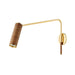 The Narragansett family tells an innovative design story marked by the use of tactile materials. While the silhouette of this sconce and floor lamp are understated, the Aged Brass metalwork and rattan-wrapped details mix hard and soft, manmade and natural. The elongated swing arm feature makes Narragansett perfect for bedside, desk, or reading nook illumination. Due to the one-of-a-kind nature of the medium, exact colors and patterns may vary slightly from the image shown.