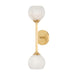 Gorgeously shaped cast metal arms in Aged Brass or Polished Nickel hold beautiful alabaster globe shades to create Melton's elegant, luxurious design. A soft glow fills the alabaster and accentuates the material's unique veining. Available as a 1-light sconce or 2-light.