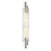 Clean lines and a familiar silhouette pair with unique materials and thoughtful details to give Harwich an elevated look. A curved piastra glass shade hugs a thick cylindrical metal frame and rectangular backplate. The stunning textured glass technique looks glamorous and gives this piece a luxurious quality. Harwich is available as a 1-light or 2-light sconce in two finishes and can be mounted horizontally or vertically.