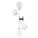 Tring's whimsical shade shape draws the eye and sparks the imagination. Gem-like, asymmetrical opal matte glass shades extend from sleek geometric metal work, creating stunning bursts of light when lit. A multifaceted work of art, Tring is available as a 4-light wall sconce, 1-light flush mount, or 13-light chandelier in Aged Brass or Polished Nickel.