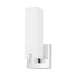 Single lamp LED wall sconce with square shaped white opal glass, metal details in brushed nickel or chrome finish, and is equipped with our powerful 120V AC LED technology