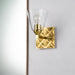 Always looking to add texture and dimension to a room, we created the perfect 1-light wall sconce. The 6.5 inch square back plate with a pressed textured shape creates a modern design completing our intent. Showcasing the elegant aged brass finish and a sleek cone-shaped, clear shade that can be mounted either up or down, we are giving that extra touch to show our attention to design and our love for the details.