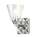 Always looking to add texture and dimension to a room, we created the perfect 1-light wall sconce. The 6.5 inch square back plate with a pressed textured shape creates a modern design completing our intent. Showcasing the elegant polished chrome finish and a sleek cone-shaped, clear shade that can be mounted either up or down, we are giving that extra touch to show our attention to design and our love for the details.