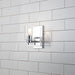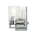 A contemporary design with a mid-century modern appeal, this versatile 1-light wall sconce adds a modern touch in a minimalistic way. Strong and sophisticated lines come together with the use of rectangles and metal detail, and the clear, slightly curved cylinder glass gives off the perfect amount of light for beauty and function. With the length of 7.5 inches, this one light bath sconce is perfect for sides of a mirror installation, and is finished in polished chrome.