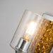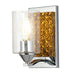 Perfect for brightening your hallway, bathroom or living space, this 1-light wall sconce features a clean-cut rectangle backplate with textured shapes, simple curved arm and a unique two toned finish of polished chrome and gold leaf. Showing off its contemporary side, this one-light sconce uses a cylinder shaped clear seeded glass to bring attention to the mix of texture and detail that come together in our Arcadia collection.