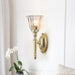 Dryden 1 light bath light in Polished Brass. Cut glass and torchiere styling provide an elegant look to any room.