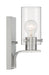 The Sommerset Brushed Nickel one-light vanity sconce features a clear glass shade enclosure with decorative thumb screws. The sleek, streamlined appearance of the Sommerset compliments both modern and transitional styles. Sommerset can also be at home in a coastal setting. Being 4.625 inches in width by 10.75 inches in height, the Sommerset is damp rated and is the perfect light source flanking the bathroom mirror, and can be positioned either up or down.