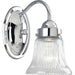 Fluted Glass 1-light bath fixture in a Chrome finish. Classic metallic fixture is paired with sparkling clear prismatic glass. Timeless in its vintage appeal, this light is stylish for both new and restored homes.