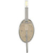 This versatile wall bracket from the Durrell Collection will easily find a home in a variety of settings in need of generous illumination. A light base reminiscent of a vintage candlestick is coated in a beautiful brushed nickel finish. Beneath the light base, a decorative wooden piece coated in a cerused white finish tops a long, curving metal arm. The arm attaches to a round brushed nickel backplate with a faux-painted wooden center for a mixed-elements aesthetic.