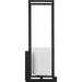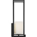 Stick with simple geometric forms and clean crisp lines with this modern wall bracket. A beautiful opal glass shade visually calms the sharp edges of the boxy frame in a masterful stroke of design excellence. The frame is coated in a classic black finish that contrasts the light shade. The light fixture is just right for spaces in need of a subtle, feminine touch.