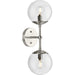 Long lines ending in clear glass globe shades define the modern aesthetic of the Atwell Wall Sconce. One central stem is capped by clear glass, creating bright illumination from the light source glowing within. Atwell fits beautifully into mid-century modern and contemporary settings, delivering accent illumination to bedrooms, bathroom vanities, dining and living rooms. This versatile fixture can be mounted vertically or horizontally as desired.