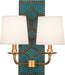 Robert Abbey 1033 Two Light Wall Sconce, Mayo Teal Leather w/Nailhead/Aged Brass