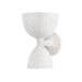 Waucoba's rounded hourglass shape, textured white finish, and hand-sculpted feel give it a soothing, organic appeal. The allover Weathered White finish has a metal base underneath creating a beautiful, unique effect. Two lamps allow for both uplight and downlight, the upper lamp is slighter larger than the lower, adding to the artisanal aesthetic. Perfect in rustic, desert-modern interiors, the natural tone and familiar silhouette pair well with many other styles.