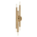 Streamlined, cylindrical metal shades are mounted at varying heights and depths from a circular backplate for a sleek and minimalist take on a mid-century modern silhouette. The variety of finishes (Patina Brass, Bronze and Polished Nickel) complement any interior, with the Polished Nickel working particularly well in a powder room or bath. This versatile six-light wall sconce can be styled horizontally or vertically.