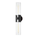 Amado is a versatile, vertical sconce. Ideal for the bath but also utterly usable throughout the home, a hint of Patina Brass or Polished Nickel peeks from within a Textured Black band at the middle. A pair of clear glass shades shed light both above and below.