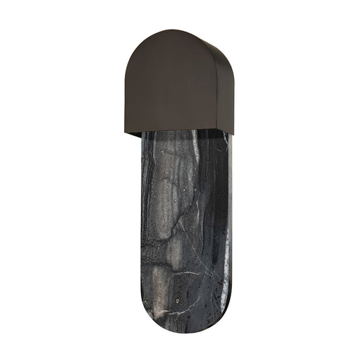 Brann's honed marble shade is simple and luxe, directing light upward for a beautiful, accented glow. A cylindrical arm and square backplate in Age...