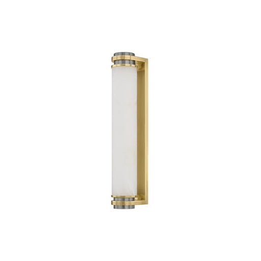 Familiar yet sophisticated materials define this graphic wall sconce. Milky alabaster stone is supported by a Vintage Brass accent piece, creating ...
