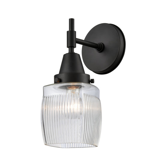 Colton - 1 Light - 6 inch - Matte Black - Clear Halophane Shade - SconceDetails:Product Type: Single GlassFinish: Matte BlackShade: Thick Clear Hal...