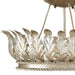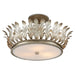 The acanthus leaves rising up from the rope-ringed band of the Biddulph Champagne Semi-Flush are made of wrought iron in a champagne finish. These match the finial securing this silver ceiling light to the white acrylic shade. This light was designed by Bunny Williams, who is known for her ability to create classical designs for modern interiors.