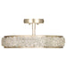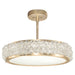 Semi-flush in a champagne tinted gold leaf finish featuring hundreds of rough cut crystal glass gems that refract light in a manner reminiscent to the cirrus clouds ice crystals that form the lunar halo in the frozen night sky. Also available in platinized silver leaf or matte black.