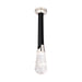 Mixed materials devise a textured aesthetic. A single brilliant Optic Haze Quartz pendant suspended from leather strapping and chrome reflects light in all directions. The sparkle is enhanced by a crystal-encrusted canopy.