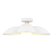 The Jane three light flush mount fixture in matte white provides abundant light to your home, while adding style and interest. The retro-inspired Jane collection features a luxe two-tone finish of Burnished Brass with Midnight Black or Matte White accents. Adjustable shades on Jane chandeliers enable illumination that perfectly suits your space. Elongated arms and soft curves add dimension and drama to each fixture.