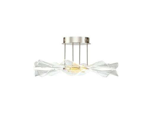 Stunning and dramatic, Ciara is a clean, contemporary design. Like sheets of ice, panels of Hammered Water Glass hang from wide metal hoops. The gl...