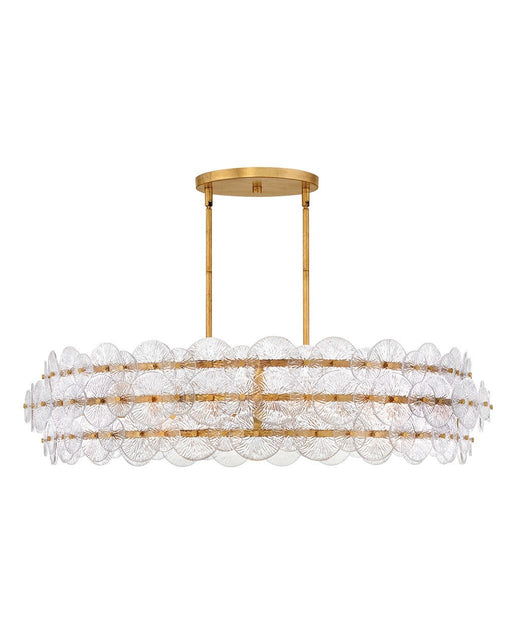 Rene radiates light through multiple layers of beautiful, pressed glass disks. Rene's signature touch highlights a Distressed Brass finish, evoking...