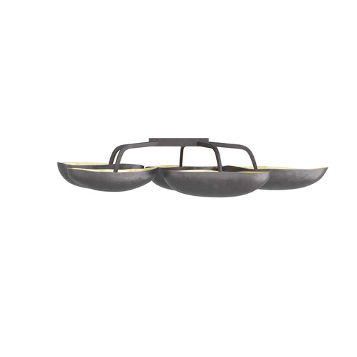 With Five Sculptural Pod-Shaped Shades, The Theo Semi-Flush Mount Is A Bold Accent In Any Space. Created In Blackened Iron With Gold-Leaf-Lined Int...