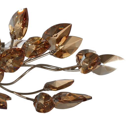 4-Light 22" Organic Semi-Flush Mount with Branch Like Arms Finished with Champagne Almond Shaped Leaf Style Crystals and Antique Gold Metal Finish....