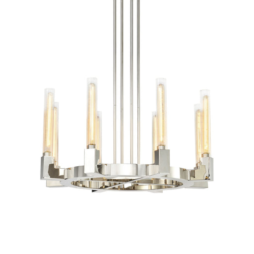 8-Light 32" Wheel Styled Chandelier with Clear Fluted Cylindrical Glass Shades Settled on a Round Polished Nickel Metal Frame.Details:Product Type:...
