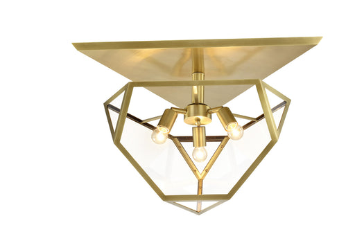 3-Light 21" Architectural Semi-Flush Mount with Clear Glass & Frosted Glass Panels Included and Aged Brass Metal Finish.Details:Product Type: C...