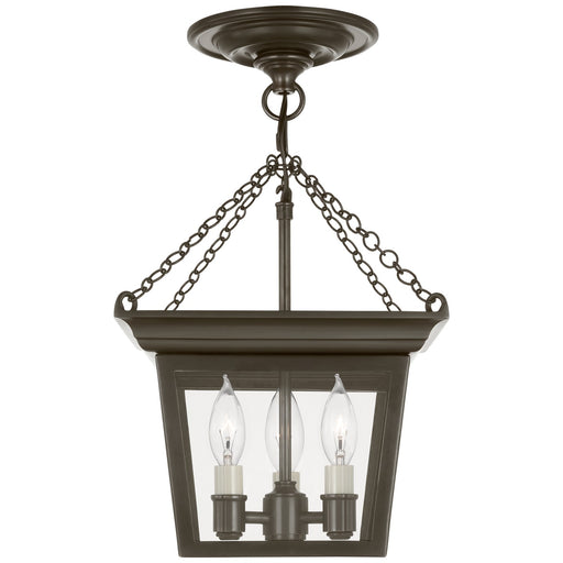 Cornice Semi-Flush Lantern in BronzeDetails:Product Type: CageFinish: BronzeShade: Clear GlassDesigner: Chapman & MyersMeasurements:Width / Dia...