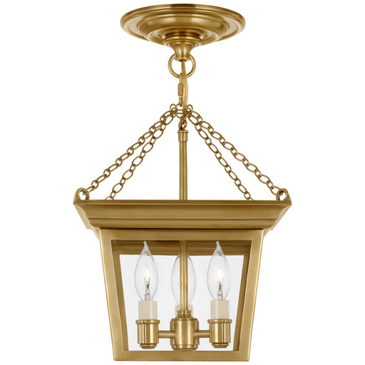 Cornice Semi-Flush Lantern in Hand-Rubbed Antique BrassDetails:Product Type: CageFinish: Hand-Rubbed Antique BrassShade: Clear GlassDesigner: Chapm...