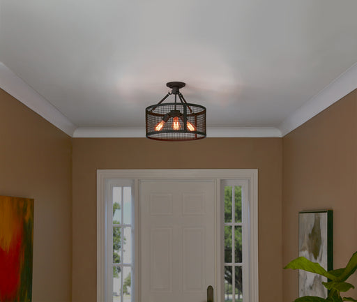 View full detailsQuoizel SHR1716RK Three Light Semi Flush Mount, Rustic Black