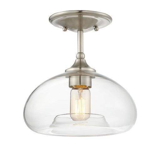 Change up your ceiling lighting with this understated, stylish 1-light semi-flush mount. Clear glass shade and Brushed Nickel finish. 11" in height...
