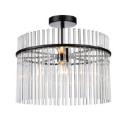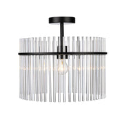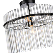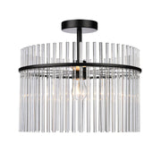 The Ava Collection pendant captivates with its refined allure, featuring glimmering circular glass rods gracefully suspended on a sleek black frame. Its versatile design allows it to shine as either a pendant or a semi-flushmount fixture, adapting effortlessly to your space. With its modern yet romantic aesthetic, it casts a soft, enchanting glow, elevating any room it adorns.