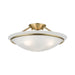This three light semi flush mount features a lustrous antique brass finish with light glowing from within the large white alabaster glass bowl shape shade. complete a kitchen, bedroom, or any room in your house with this beautiful semi flush mount.