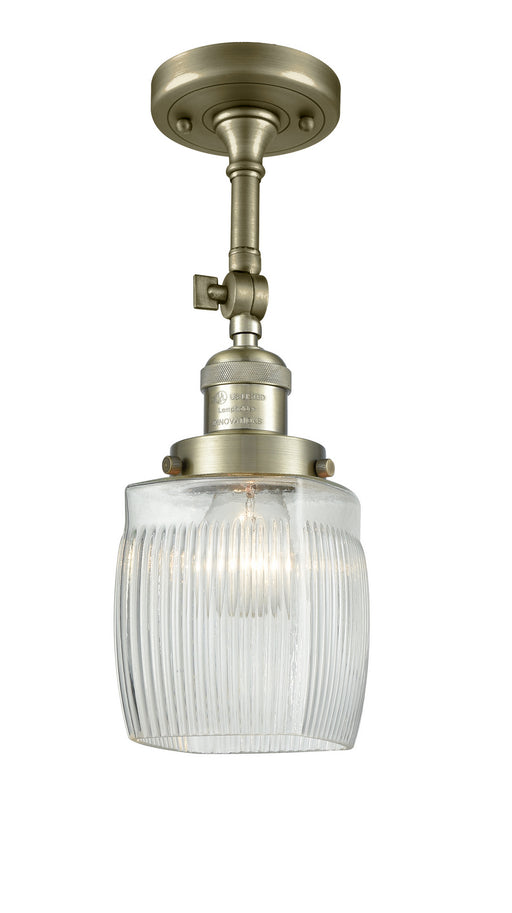 Colton - 1 Light - 6 inch - Antique Brass - Clear Halophane Shade - Semi-Flush MountDetails:Product Type: DirectionalFinish: Antique BrassShade: Th...