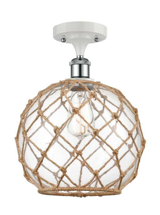 Farmhouse Rope - 1 Light - 10 inch - White Polished Chrome - Clear Glass with Brown Rope Shade - Semi-Flush MountDetails:Product Type: Glass DownFi...