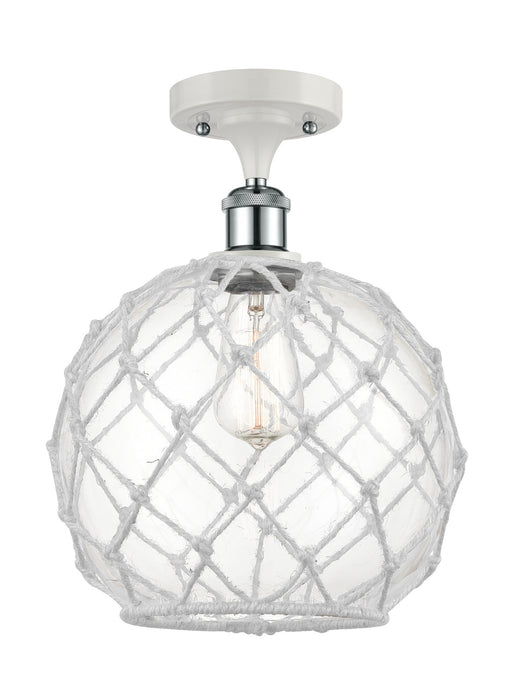 Farmhouse Rope - 1 Light - 10 inch - White Polished Chrome - Clear Glass with White Rope Shade - Semi-Flush MountDetails:Product Type: Glass DownFi...