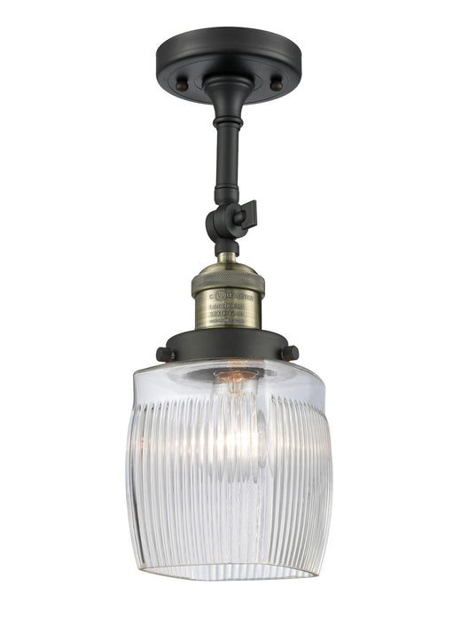 Colton - 1 Light - 6 inch - Black Antique Brass - Clear Halophane Shade - Semi-Flush MountDetails:Product Type: Glass DownFinish: Black Antique Bra...