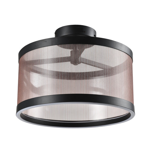 The Cora Collection semi flushmount enchants with its modern elegance, showcasing a sleek black metal frame paired with a bronze organza hardback s...