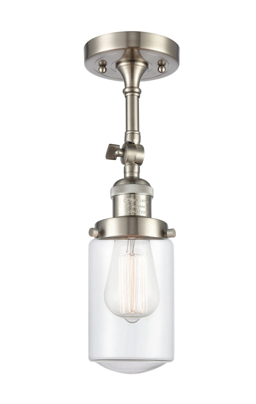 Dover - 1 Light - 5 inch - Brushed Satin Nickel - Clear Shade - Semi-Flush MountDetails:Product Type: DirectionalFinish: Brushed Satin NickelShade:...