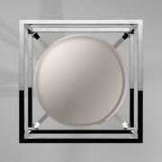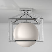 Designed by Steven Sabados S&C, the "Eclipse" collection semi flush mount features a stunning plated polished nickel frame that encases circular opal glassware.